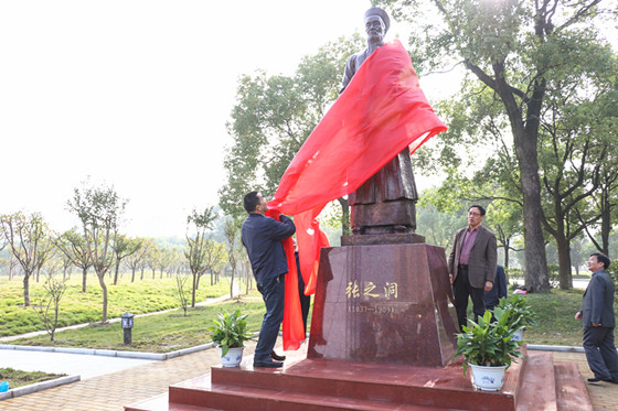 本网讯(大通社记者 董顺 贾维娟)10月24日上午,张之洞雕像落成揭幕仪式在我校樱花园西南侧举行。校长陈兴荣,党委副书记、纪委书记李金奇,党委常委、副校长彭锦,党委常委、校长助理汪晓凌,党委常委王锋出席仪式并一同为张之洞雕像揭幕。李金奇主持仪式。