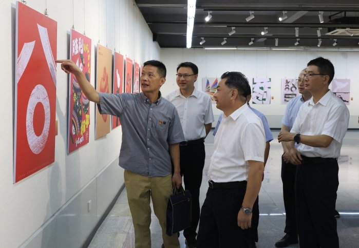 本网讯 9月3日,“爱和平·铭记历史”纪念中国人民抗日战争暨世界反法西斯战争胜利80周年全国主题创意活动(湖北黄冈)展在我校美术学院闻一多美术馆举行。校党委书记陈向军,党委副书记陈朝阳,党委常委、副校长宋文生出席开幕式。